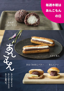 | 毎週木曜日は 生協売店「あんこもん」の日! 前橋市の あんこ専門店「あんこもん」が売店で購入できます。 ・おはぎ(つぶ・こし) ・エクレあん ・きまぐれあんバター ・あんこパン 毎週木曜日は「あんこもん」の日です。 |